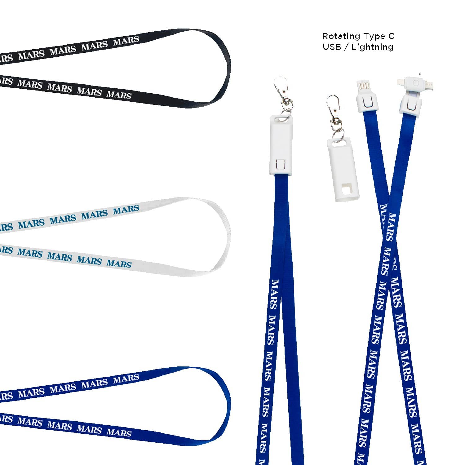 When you need to keep your cell phone charging cable ready to go at all times, look no further than this 3-in-1 charging cable This is a practical, multi-use item that won’t end up in a forgotten drawer or get thrown away. It will promote your brand long after the event is over Make it the perfect set! This item is frequently paired with our item#PLUGNPOWER a small USB wall charger! Perfect for use as a lanyard and a badge holder for conventions, industry trade shows, and training seminars Features rotating Type C and 2-in-1 dual compatible tips that work with Android and Lightning iOS phones. Note: it is not compatible with iPads. 17.875″ D x .5″ W