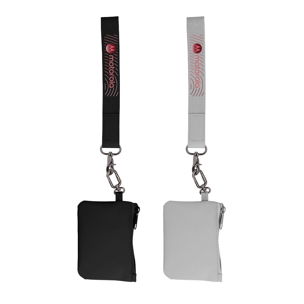 Featuring a durable polyester webbing wristlet with a sleek leatherette accent and modern gunmetal clasp, this set proves that utility can be good-looking. The clasp snaps easily onto the Benton Rectangle recycled PU zip pouch—outfitted with rPET-lined zipper compartments—so your keys, cards, or cash stay secure (and sustainable). Slip the lanyard onto your wrist and you’ve got hands-free convenience that keeps your small essentials close, whether you’re dashing to a meeting, catching a flight, or running errands in style. 1″ W x 9.05″ H