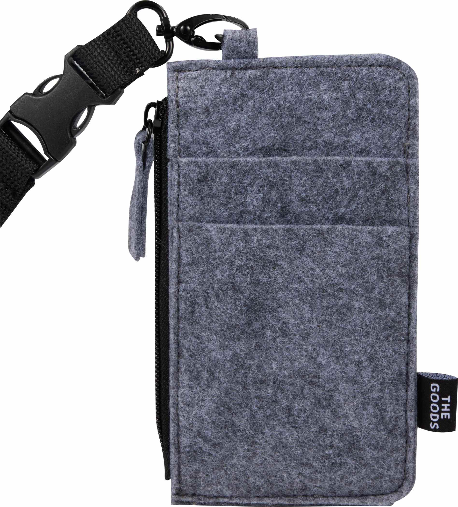 Keep all your essentials close with the versatile THE GOODS™ Recycled Felt Lanyard Wallet! Made from recycled PET plastic, this wallet features both a wristlet and a neck lanyard, allowing you to carry it however you prefer. The front slash pockets provide easy access to your cards, while the zippered main pouch keeps your valuables secure. By choosing this wallet, you’re supporting environmental nonprofits through a partnership with 1% For The Planet. 0.10″ D x 3.50″ W x 6.50″ H